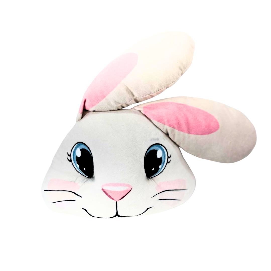 A Almofada Formato Rosto de Coelho é o toque de ternura que faltava na sua decoração! Com 20cm de altura, 30cm de largura e orelhas de 29cm, ela apresenta o adorável rostinho de um coelhinho em pelúcia macia e aconchegante — perfeita para crianças e adultos que amam itens delicados e divertidos.