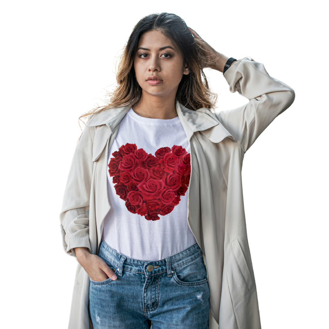 Camiseta Feminina Branca de Algodão P - coração de rosas