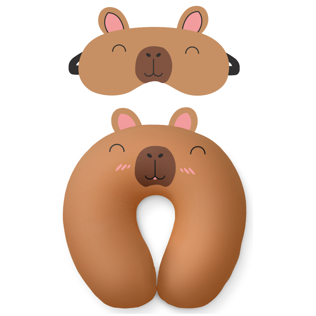O Kit Infantil Capivara foi feito para tornar os momentos de descanso e viagem ainda mais aconchegantes e cheios de charme. A almofada de pescoço aveludada com rostinho de capivara oferece suporte e conforto na hora de dormir ou relaxar, enquanto a máscara de dormir no mesmo tema completa o conjunto com muita fofura. Ideal para presentear ou acompanhar os pequenos em aventuras com mais bem-estar.